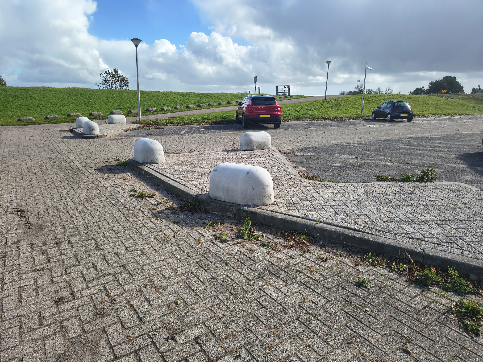 Onze klant Jachthaven de Roggebot heeft 10 jumboblokken zonder lepelgaten geplaatst op het parkeerterrein.